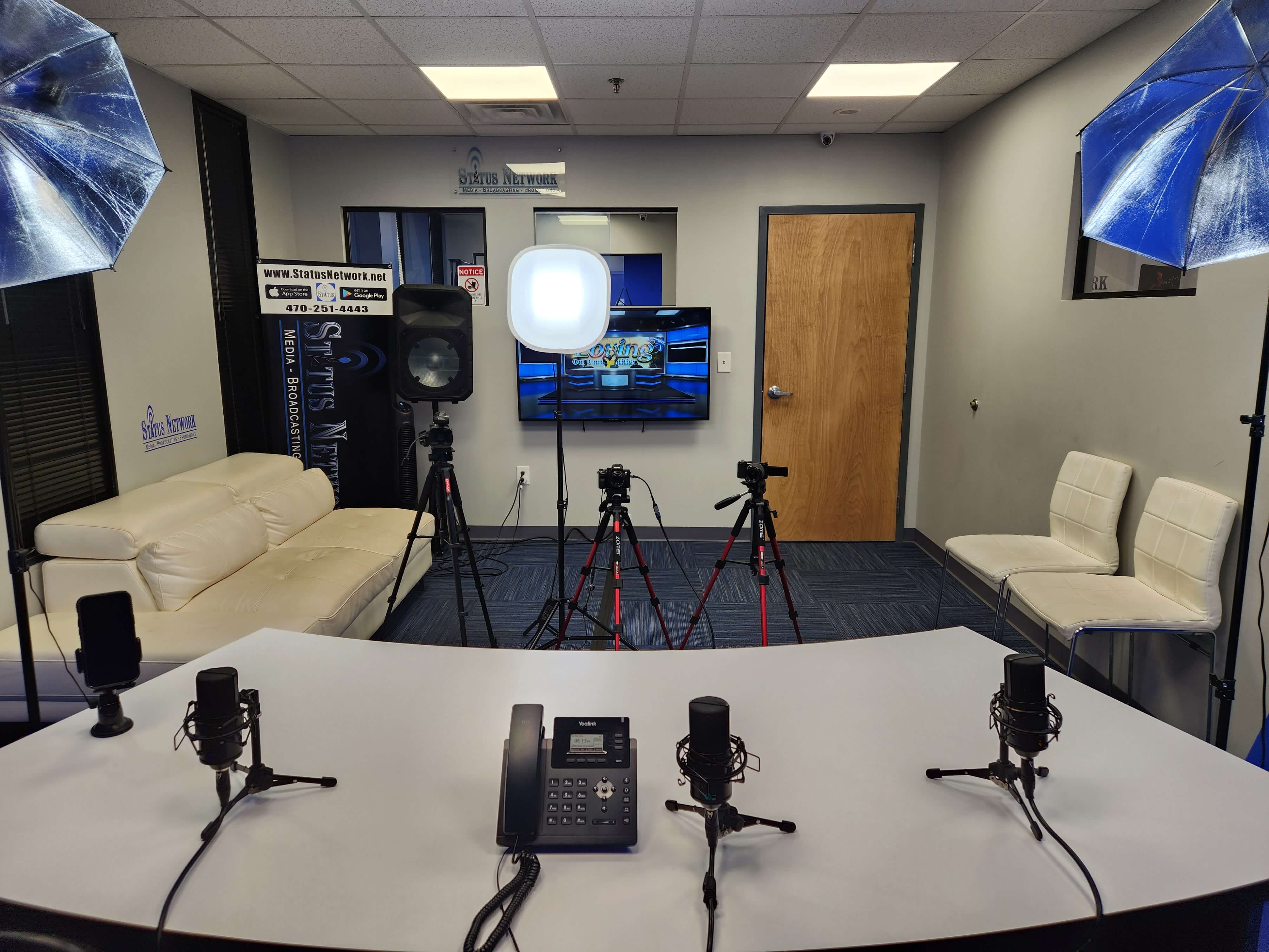 Status Network is a video, podcast and film studio designed for green screen technology based in Atlanta, GA. We have several studio sets to choose from as well as a front office and mini kitchen space. Ample parking available as well.